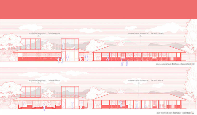 To design ‘VillaSOFIA’, lead architect Néstor Medina Aguilar (see more here) began with an extensive study of the existing house typology, which stands as a single-floor volume with a traditional hipped roof made of clay tile and a large eave framework. Its interiors, meanwhile, feature very few openings that unfold in succession — starting from large empty rooms and ending with a window to create gentle outdoor-indoor gradations.