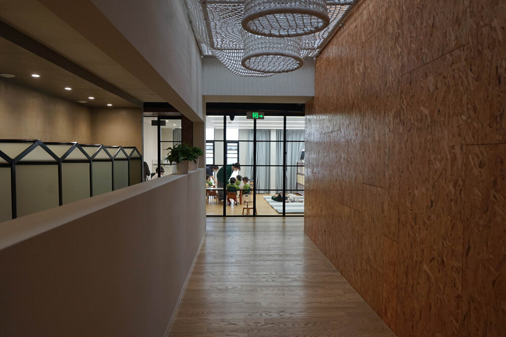 a net playground equipment that penetrates through the second floor allows for three-dimensional play