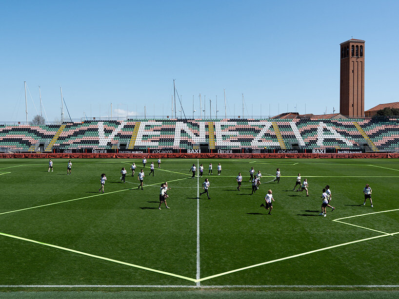 recordings from Venice’s Stadio Pier Luigi Penzo appear on the sceens | image by Giovanni Pellegrini