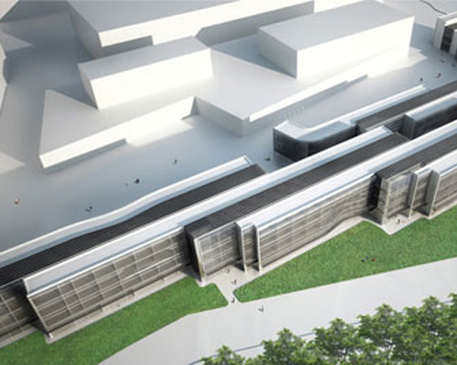 japanese architectural firm atelier hitoshi abe have been announced the winner of the new campus of the vienna university of economics and business competition (WU). their design the ‘mille feuille’ (french – thousand sheets) consist of two main sections. the building is organized around three distinct outdoor spaces; the north plaza bordered by student amenities, the central corridor which contains department entries and the south boundary that connects students to nature. the organixation of long thin layers allows the building to be responsive to different site conditions and provides flexibility for future adaptation.