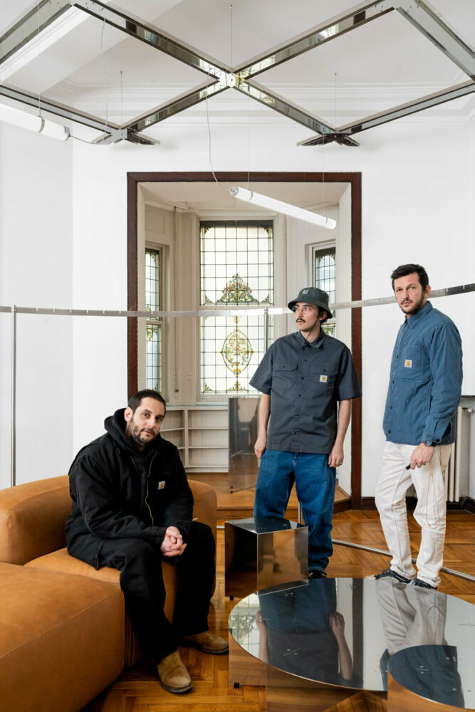 The design team opted for soft lines and clear geometrical forms that come in stainless steel custom surfaces, boasting a mirror effect that explores the various properties of light and plays with space perception. For this project, NM3 worked with dry-built and assembled installations that are completely recyclable. Exploring the limits between artistic and technical, the creative studio made a stainless steel lozenge-shaped ceiling structure that houses all the new technical infrastructure of the showroom while adding an eye-catching visual effect.