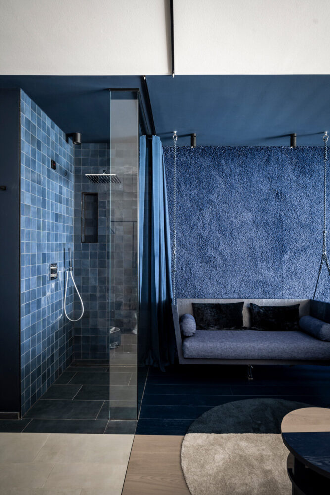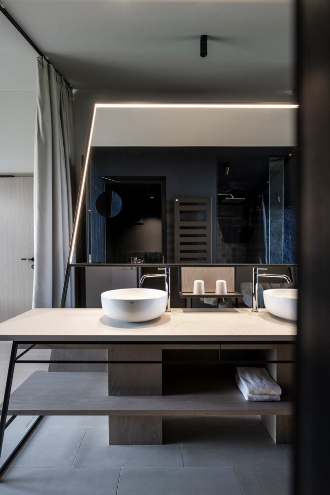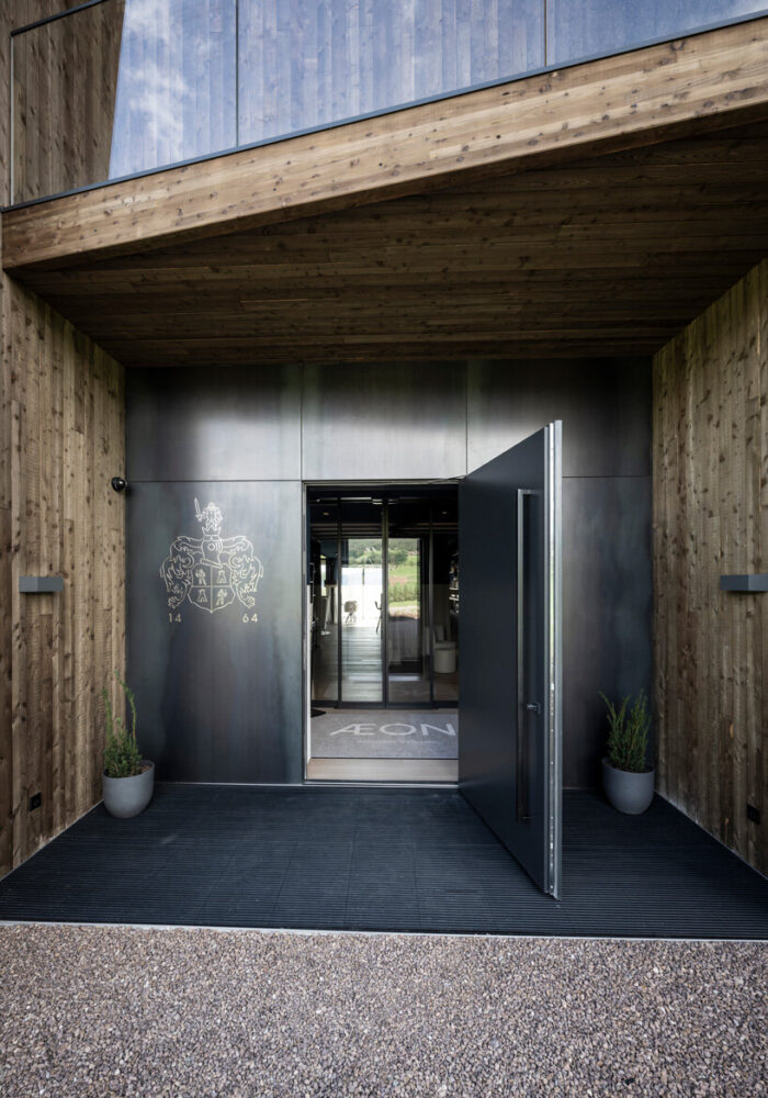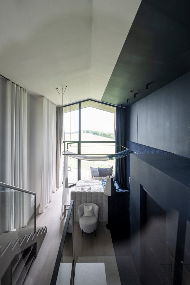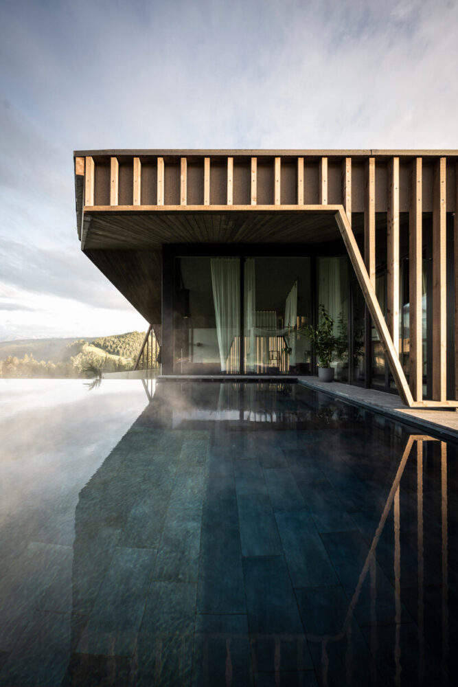 the project sits like a ring placed over the terrain, with its funnel-like roof forming a shaded perimeter walkway and an introverted core.