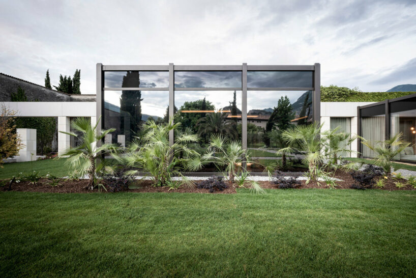 the alternation of glass bodies and green courtyards creates an evocative pattern of advanced and set-back volumes