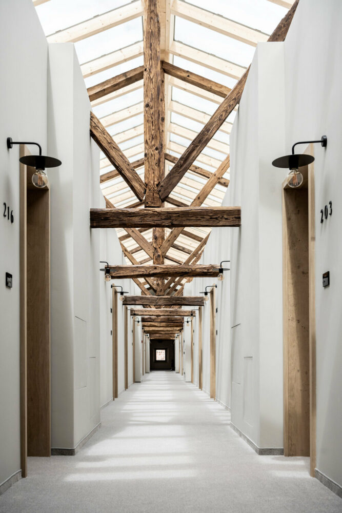 the old doors, in light wood, were all conserved on the external side, along the hallway