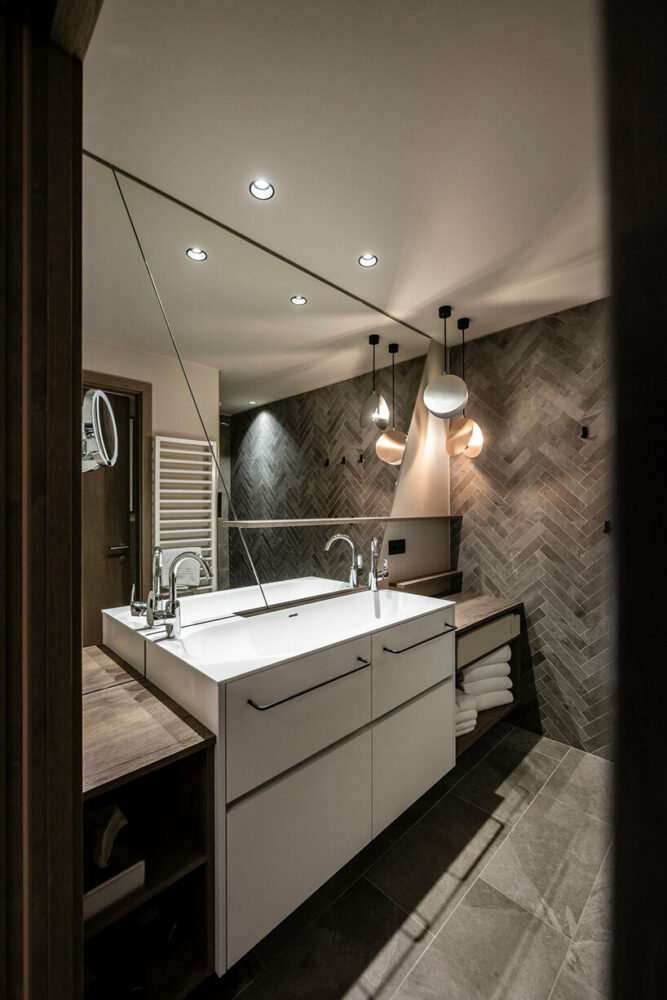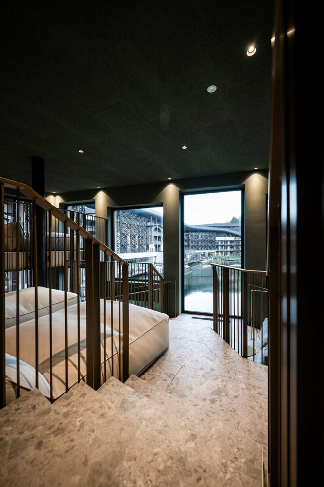 Moving to the more private area of Falkensteiner Family Resort Lido, noa* added 36 new rooms to the existing 82. According to the studio, this intervention was an opportunity to define a new room type that, in its different variations, characterizes the resort’s offer for families. The rooms include an area for parents and one for children, separated by a sliding partition and a large bathroom with washbasins at different heights.