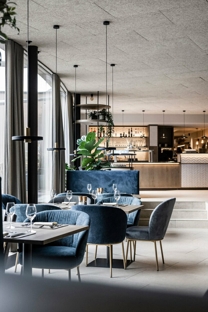 The noa* team extended their vision to the interiors of Falkensteiner Family Resort Lido, both new and existing parts, which have been newly styled and, in some cases, expanded. ‘As with the exteriors, the interior design was steered on the one hand by the aim of creating a playful, child-friendly atmosphere, and on the other hand by a reference to the natural environment surrounding the resort,’ clarifies interior designer Barbara Runggatscher.