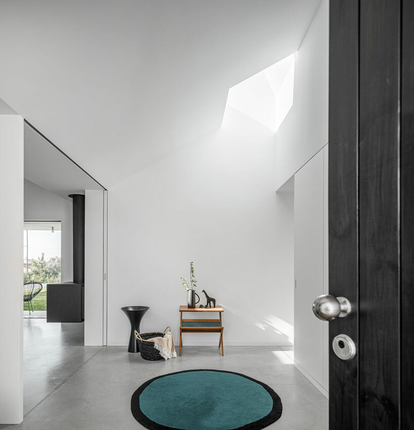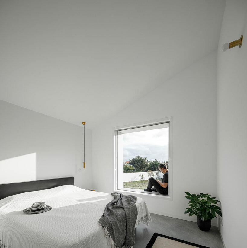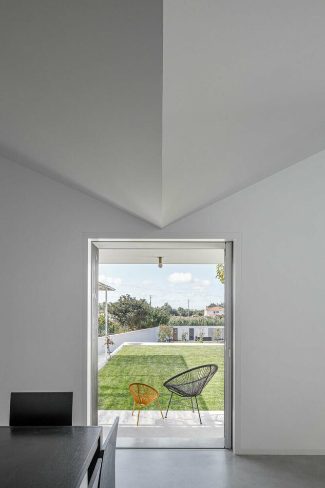 architecture practice NU.MA realizes a minimalistic dwelling within a residential neighborhood of santa joana, portugal. the area is defined by its repetitive rows of housing, a characteristic from which the design team drew inspiration. following this systematic repetition, the new house takes shape as an array of three rows.