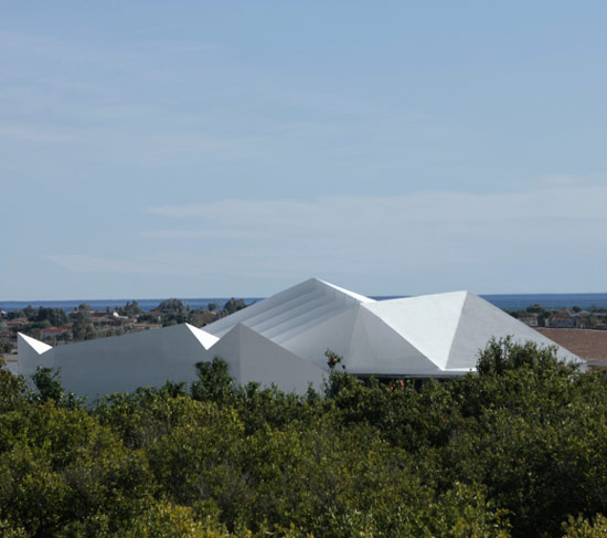 a continuation of the existing rock formations, the hotel is articulated as a series of stepped horizontal planes, courtyards, and gardens.