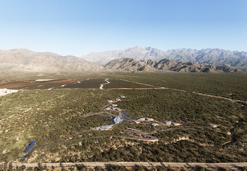 located in a valley of tupungato, argentina, ‘eco-wine lodges’ takes shape as a series of abstract scattered volumes, made out of rammed earth,  connected by different long pathways. OF. studio sought to form a hotel for wine tourism with a highly sustainable imprint that aims to offer visitors a unique experience. the architects intended to keep a balance between introverted and extroverted experiences; an isolated yet intimate feeling when guests are inside the lodges and a very open and communal atmosphere when walking towards the paths.