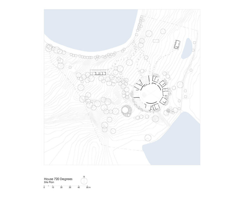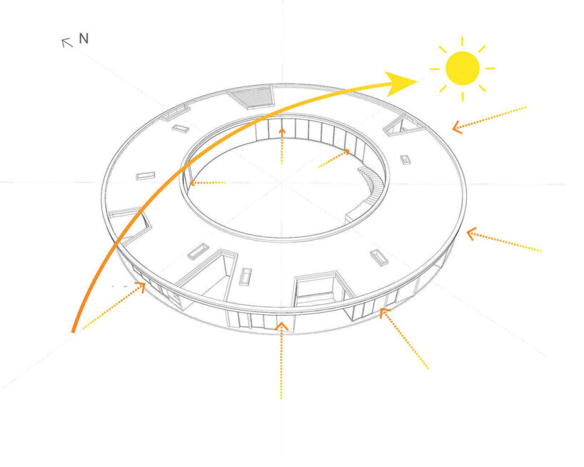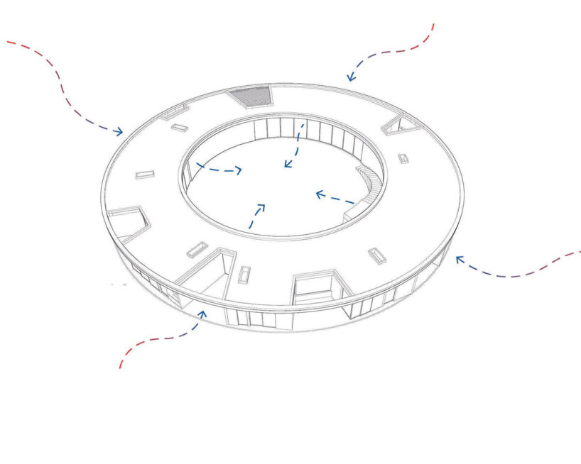 the spiral structure is built from upcycled lantana camara, an invasive shrub introduced to india through colonial trade routes.