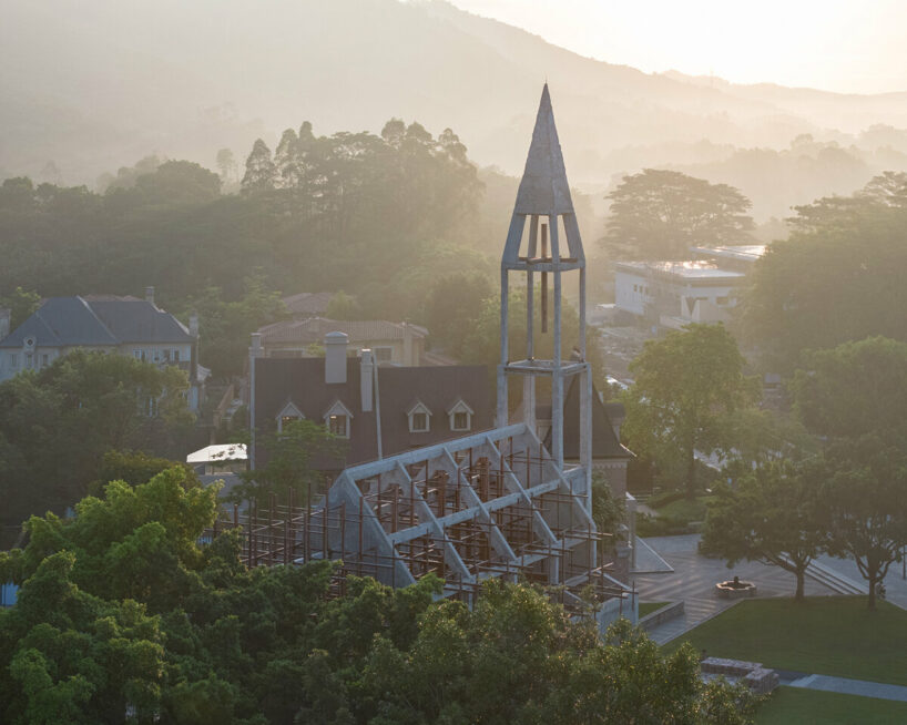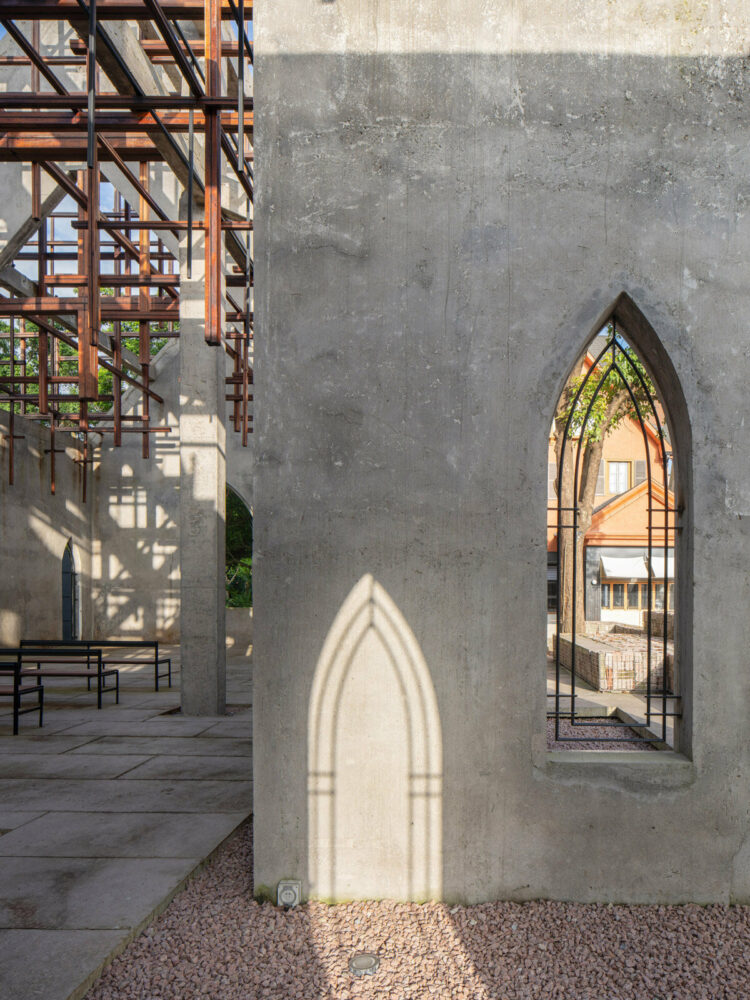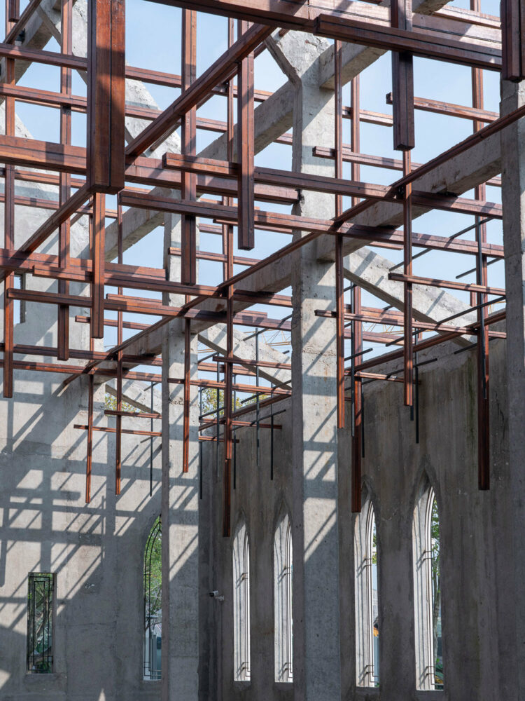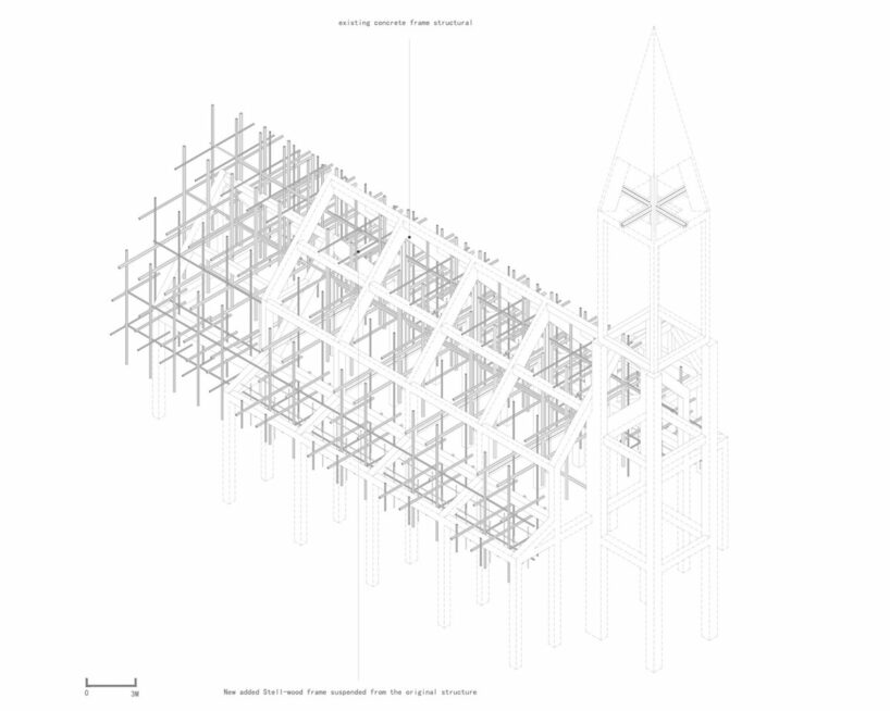 a multi-layered steel ‘cross’ structure and wooden frame were added to the roof