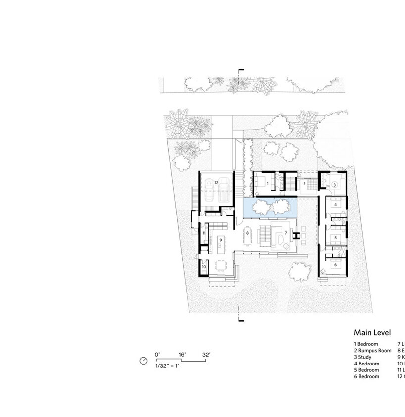 the lowest level hosts more social areas for large family gatherings