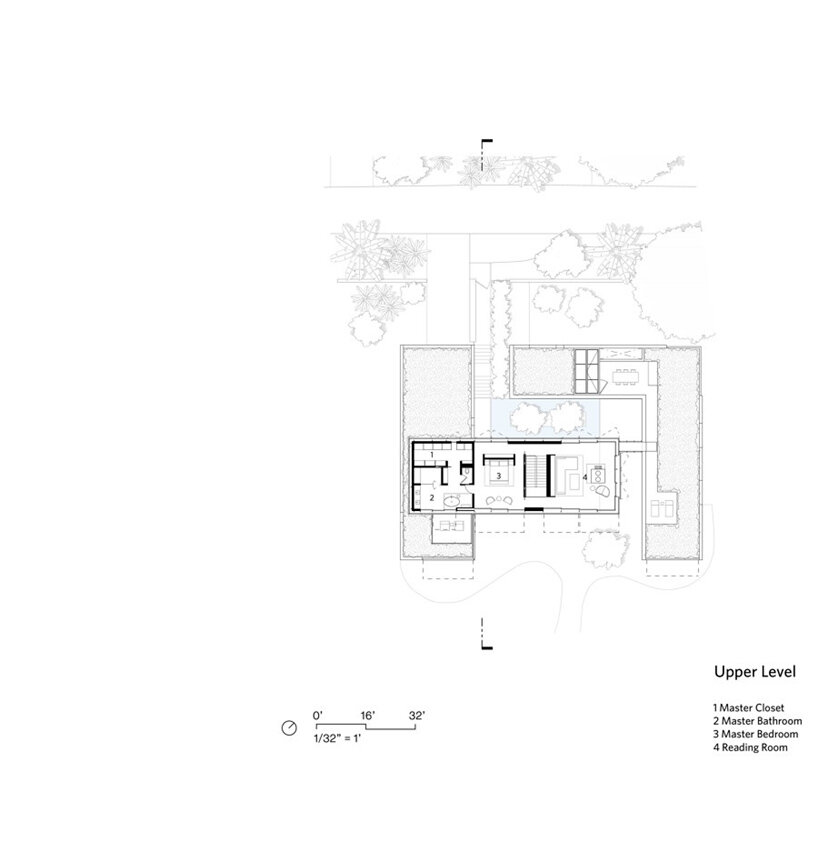 a courtyard garden and shallow pool can be accessed through sliding doors