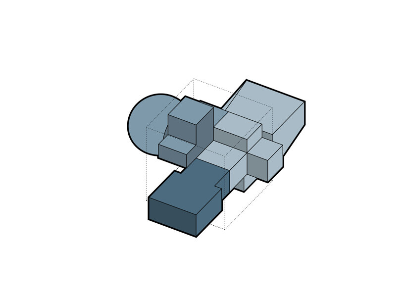 The building is composed of a spherical 800-seat Globe Playhouse, a 1,500-seat Grand Theater, and a 800-seat Blue Box plugged into a central cube. The cube accommodates the stages, back stages, and support spaces of the three theaters, allowing the Grand Theater and the Blue Box to be coupled to form a Super Theater—a massive space with factory quality for unsuspected performances. The Globe Playhouse with a unique proscenium allows experimentation with stage framing.