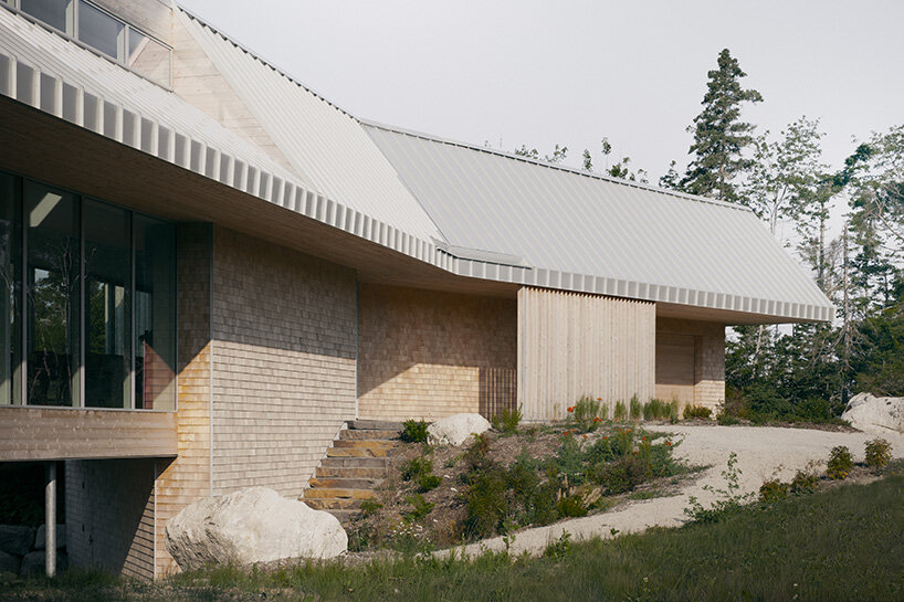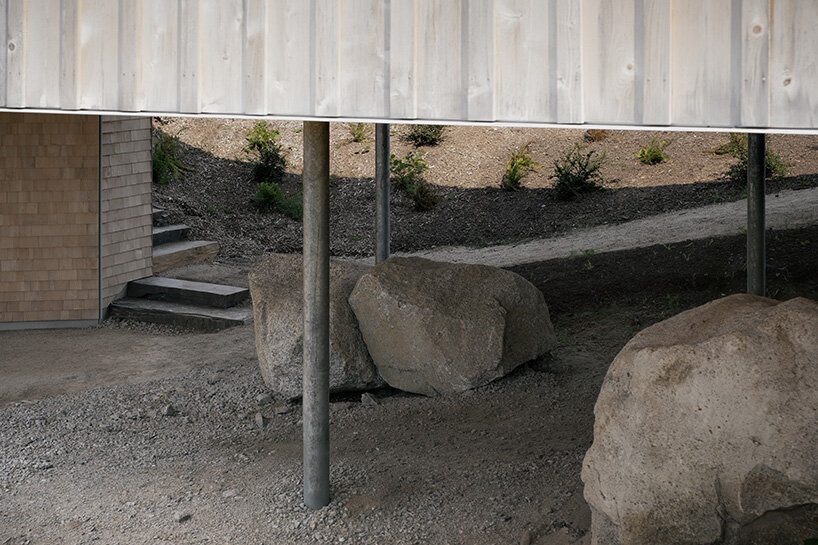 pale wood floors, cedar walls, and muted masonry echo the greys and tans of rock and sand