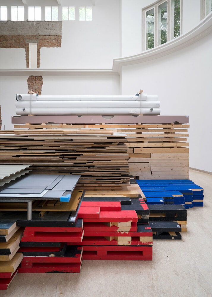 the 2023 german pavilion reuses leftover materials from last year's art biennale exhibitions