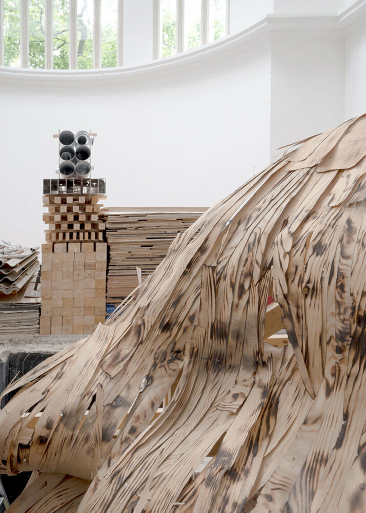The same guiding principle is applied across the entire project—the Pavilion’s exhibition itself will be realized entirely with leftover material from last year’s Biennale Arte 2022; several national pavilions are lending support, making demolition material from their exhibi­tions available for reuse.