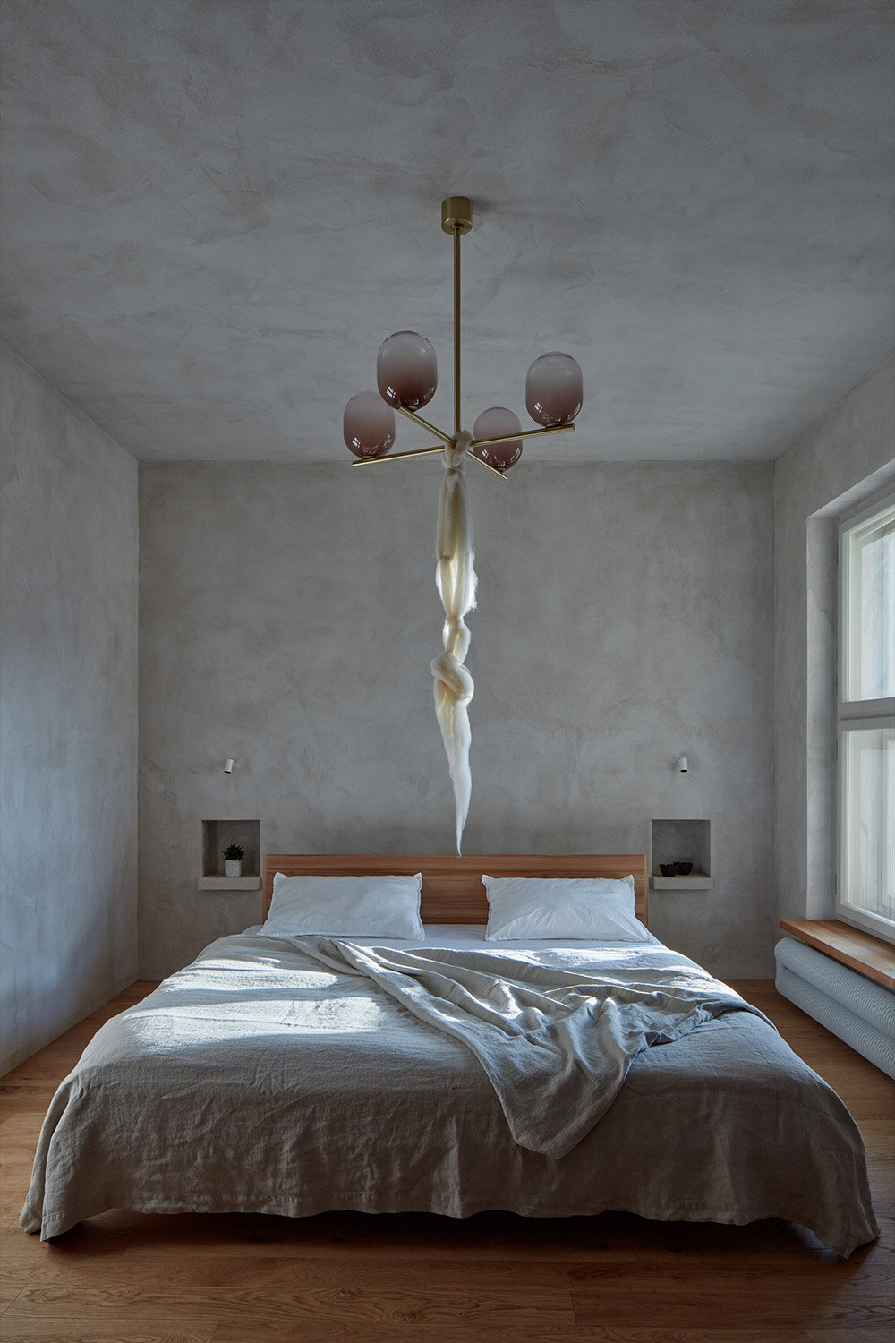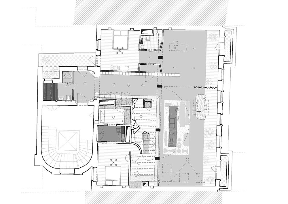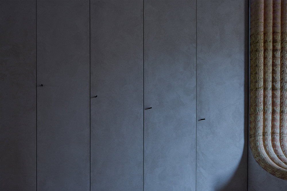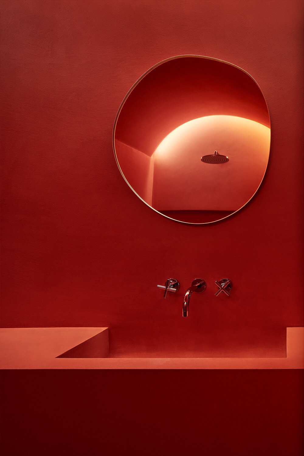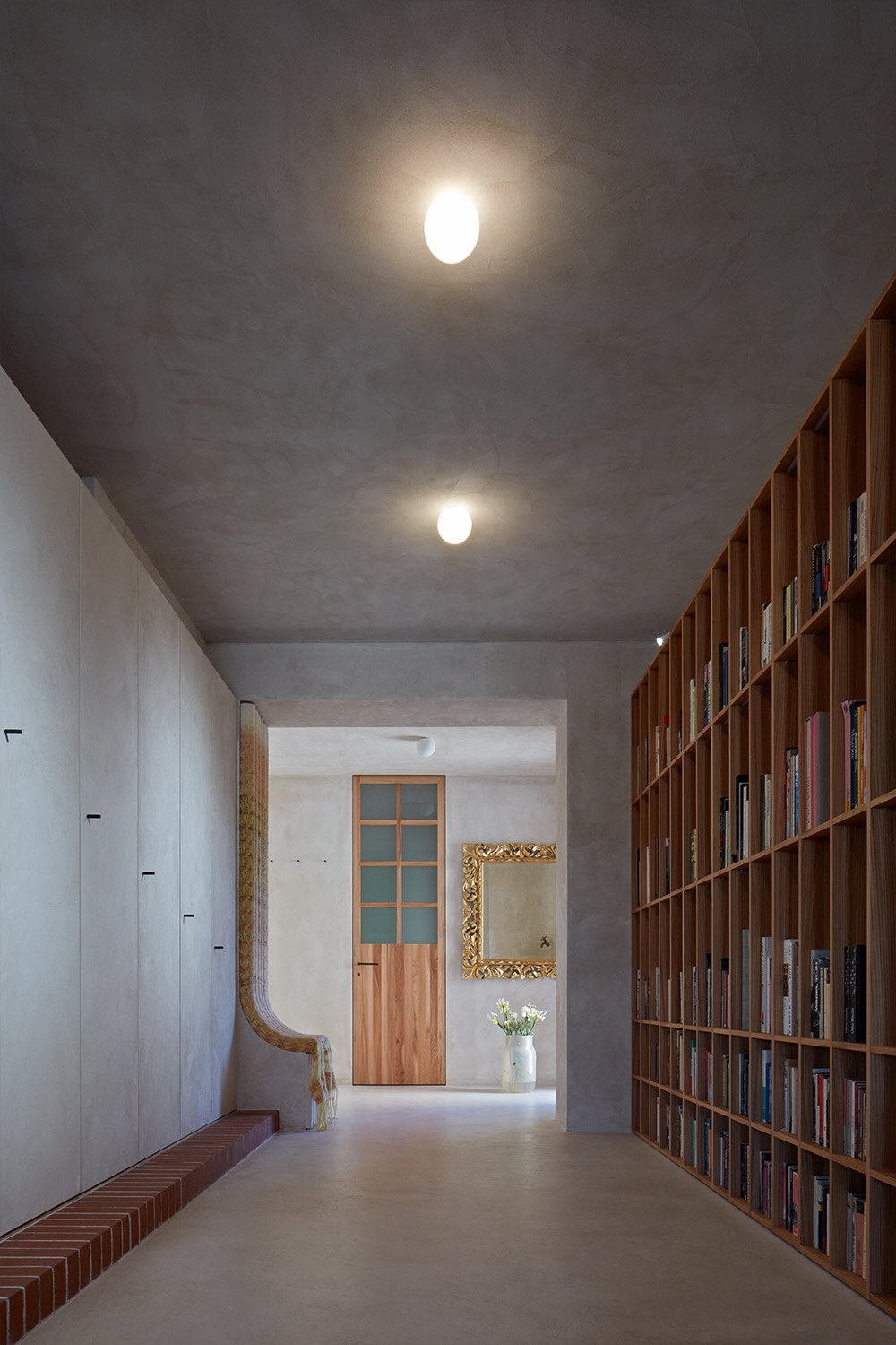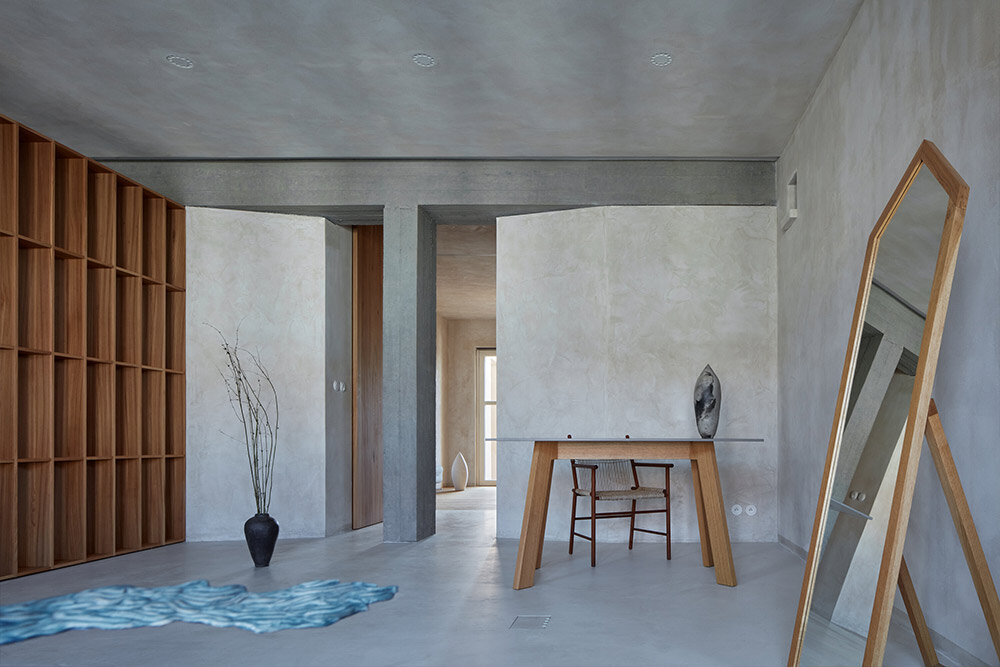 a big terrazzo design with a concrete bar takes center stage in the main communal area