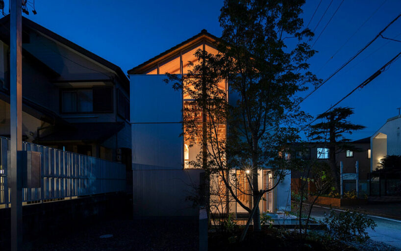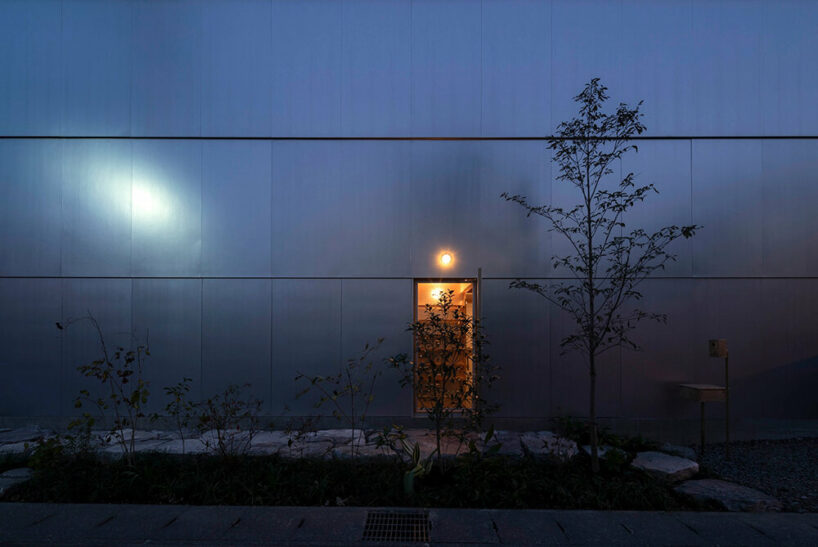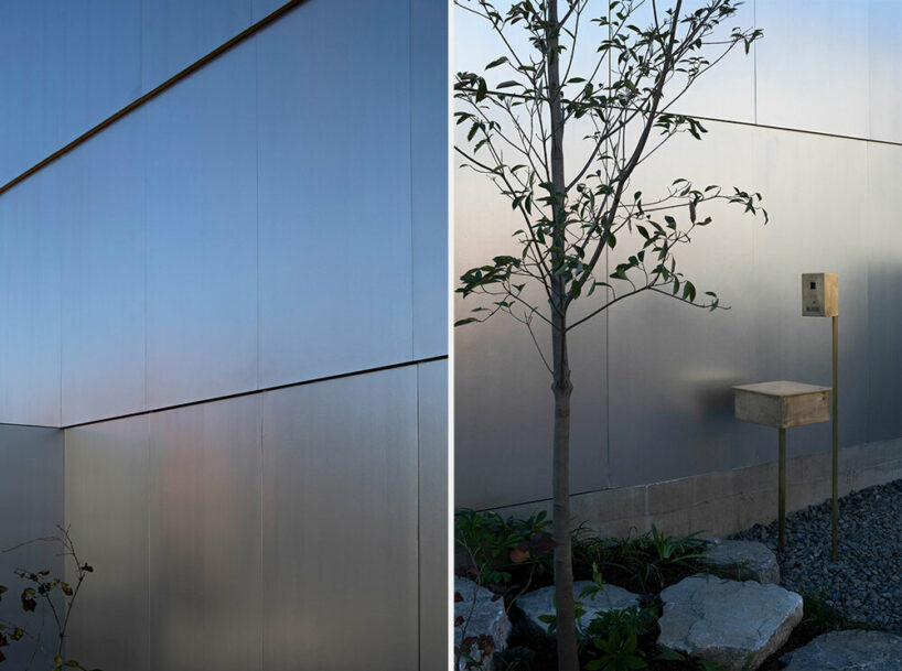 Seiichi Yamada and Associates has clad ‘House in Nishichiyoda’, a private residence in Shizuoka City, Japan, in an operable silver facade. When completely closed, the reflective exterior blurs the home’s presence to the outside, mirroring the movements of passersby and the swaying trees and plants that surround it. When one of the three-story buildings’ walls opens, ‘something like a dark hole appears on the outside, and a sharp ray of light shines inside.’ Meanwhile, when all the walls are opened, exterior and interior spaces blend seamlessly and plenty of natural light enters the house. ‘By repeating this process, the house, which represents the invisible on the other side of the wall, is like a temple,’ explains the Japanese architecture studio. ‘Just as a monk opens and closes fittings in the morning and evening, these small daily activities create a way of living.’