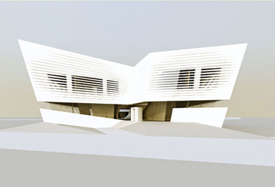 a continuation of the existing rock formations, the hotel is articulated as a series of stepped horizontal planes, courtyards, and gardens.