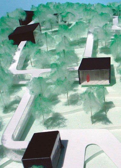 a continuation of the existing rock formations, the hotel is articulated as a series of stepped horizontal planes, courtyards, and gardens.