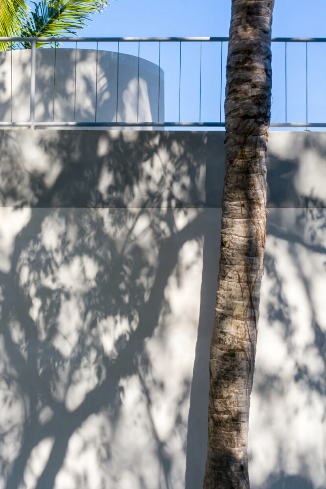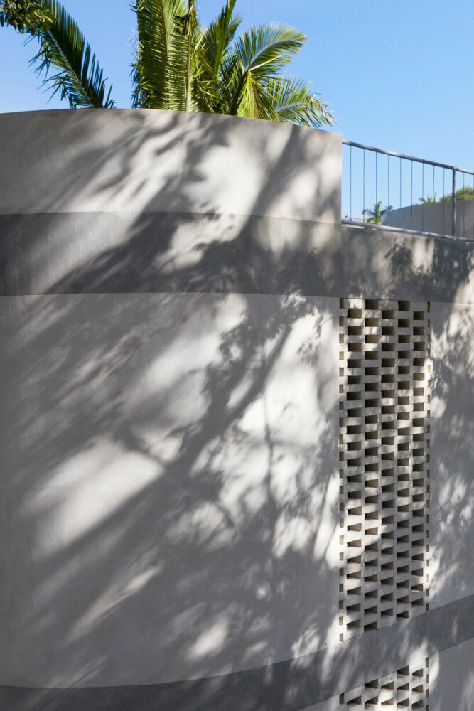 To design Chiripa, PALMA’s main goals were to obtain the best views of the bay while reducing the visual impact of the new structure. As such, the team created two volumes placed facing each other and offset in opposite directions to allow for unobstructed views, privacy, cross ventilation and natural lighting. To lessen the imposing scale of the complex, they built two of the four floor levels into the sloping site so they can’t be seen from the street. The architects also left the concrete beams and slabs exposed but applied off-white stucco onto the walls to create a neutral backdrop for the shadows cast by the surrounding vegetation.