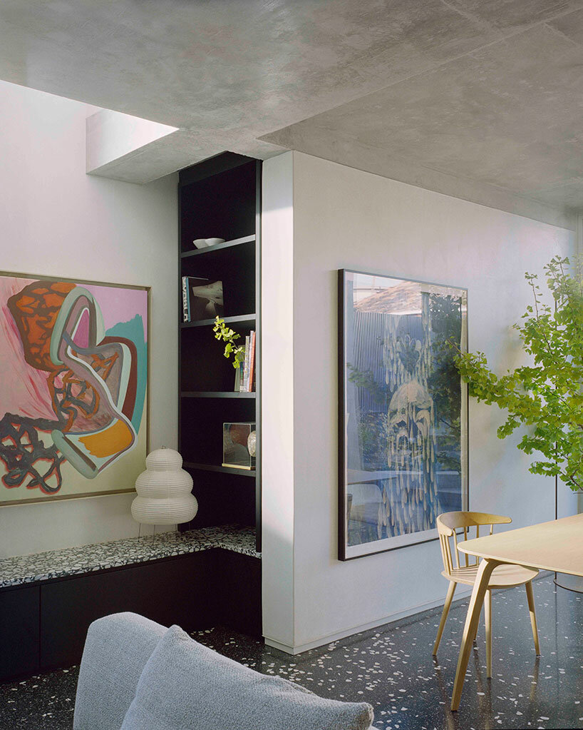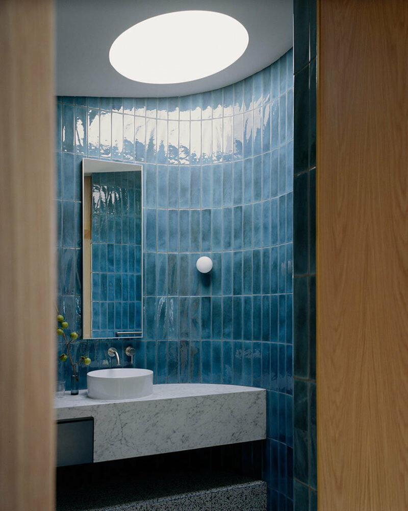 the project sits like a ring placed over the terrain, with its funnel-like roof forming a shaded perimeter walkway and an introverted core.