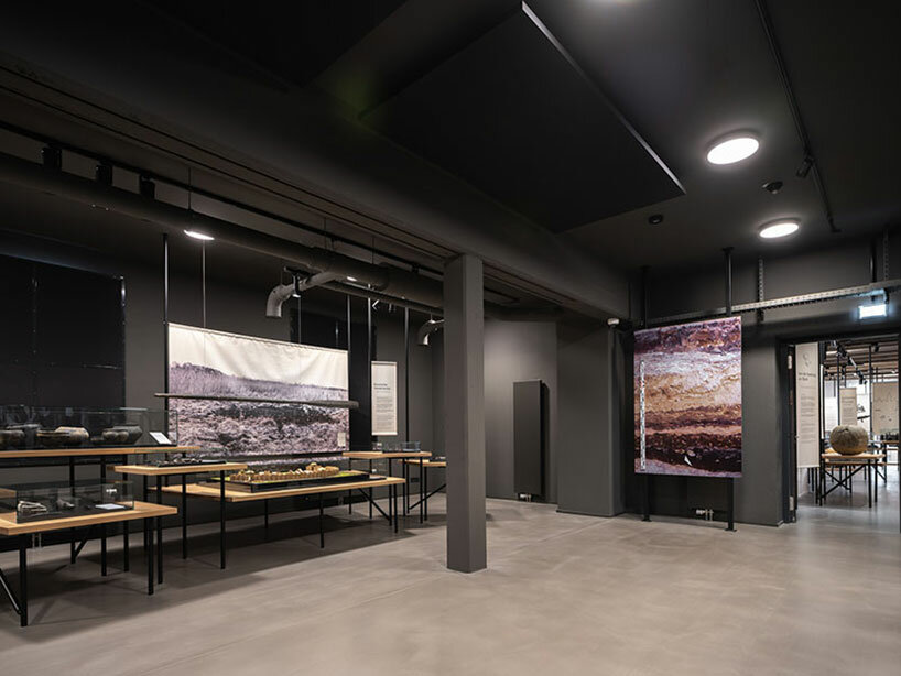 the project sits like a ring placed over the terrain, with its funnel-like roof forming a shaded perimeter walkway and an introverted core.