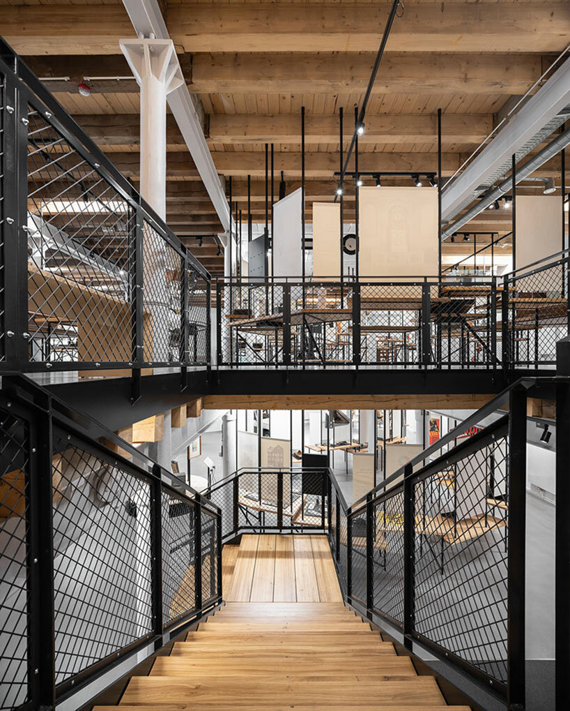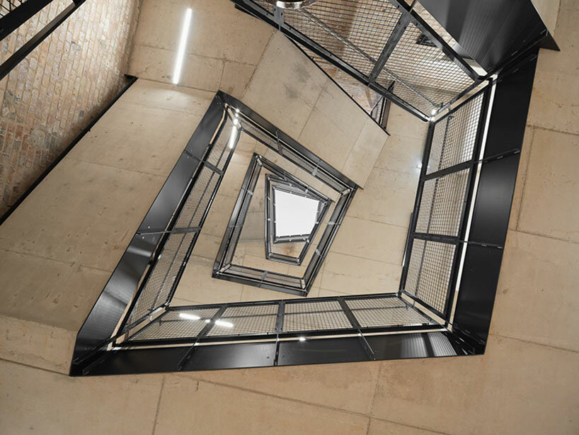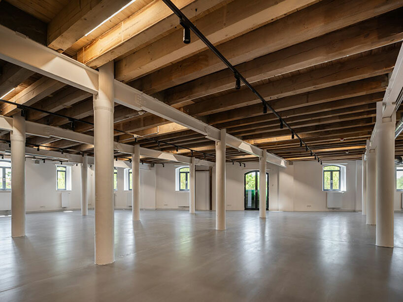 the proportions, materiality and vertical facade structure of the mill building are reflected in the modern extension