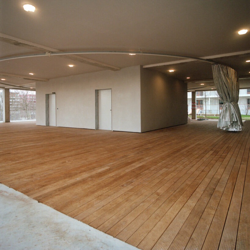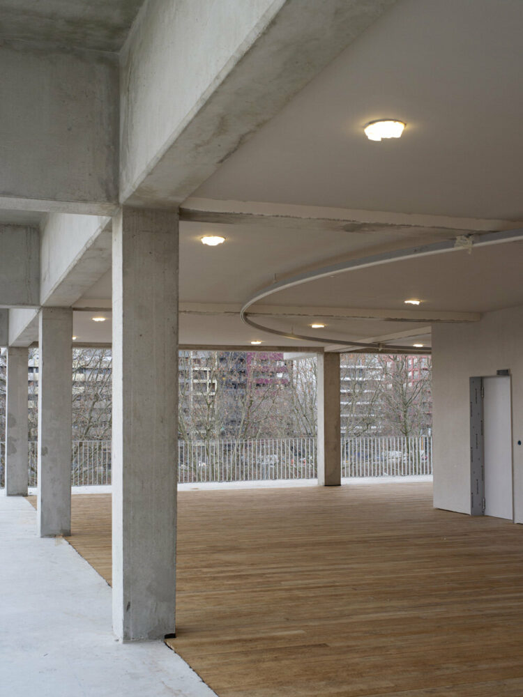 Lot D, known as ‘Les Quinconces’ for its urban layout, primarily features a variety of residential units, including family homes, duplexes, triplexes, penthouses, townhouses, and patios. It also offers a diverse range of youth and sports facilities. This programming by uapS Agency addresses diversity and integration issues within a socially disadvantaged area. ‘Les Quinconces’ serves as a model of social inclusion, emphasizing universal accessibility, low-carbon construction, and environmental sustainability. Its integration with a nearby forest facilitates gravity-based water management and biodiversity enhancement.