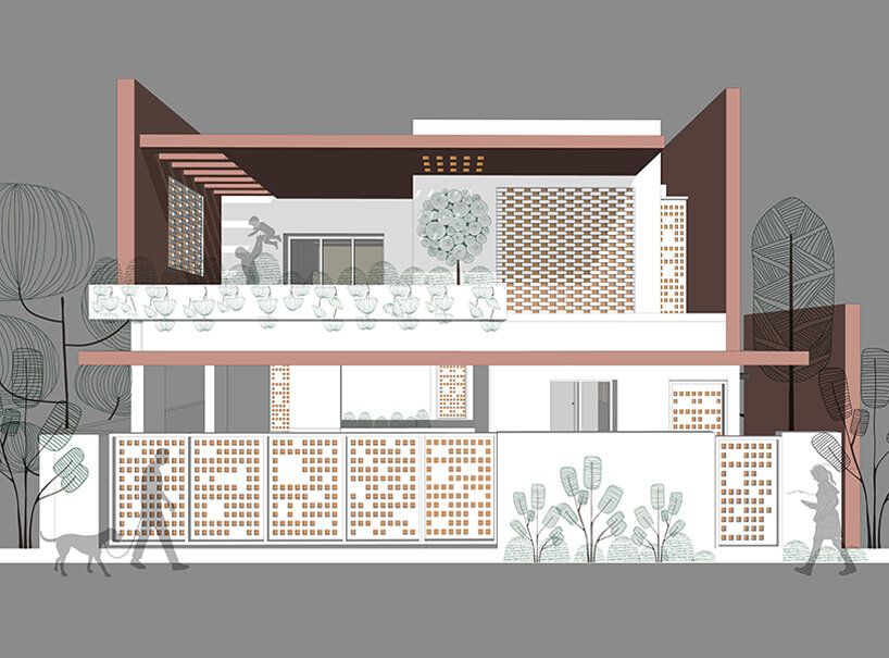 Perforated Plane House’s ground floor caters to the frequent visits of the couple’s in-laws