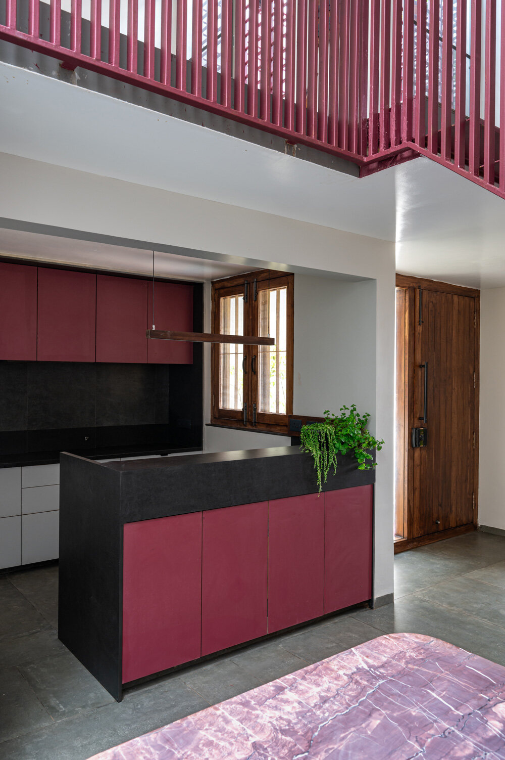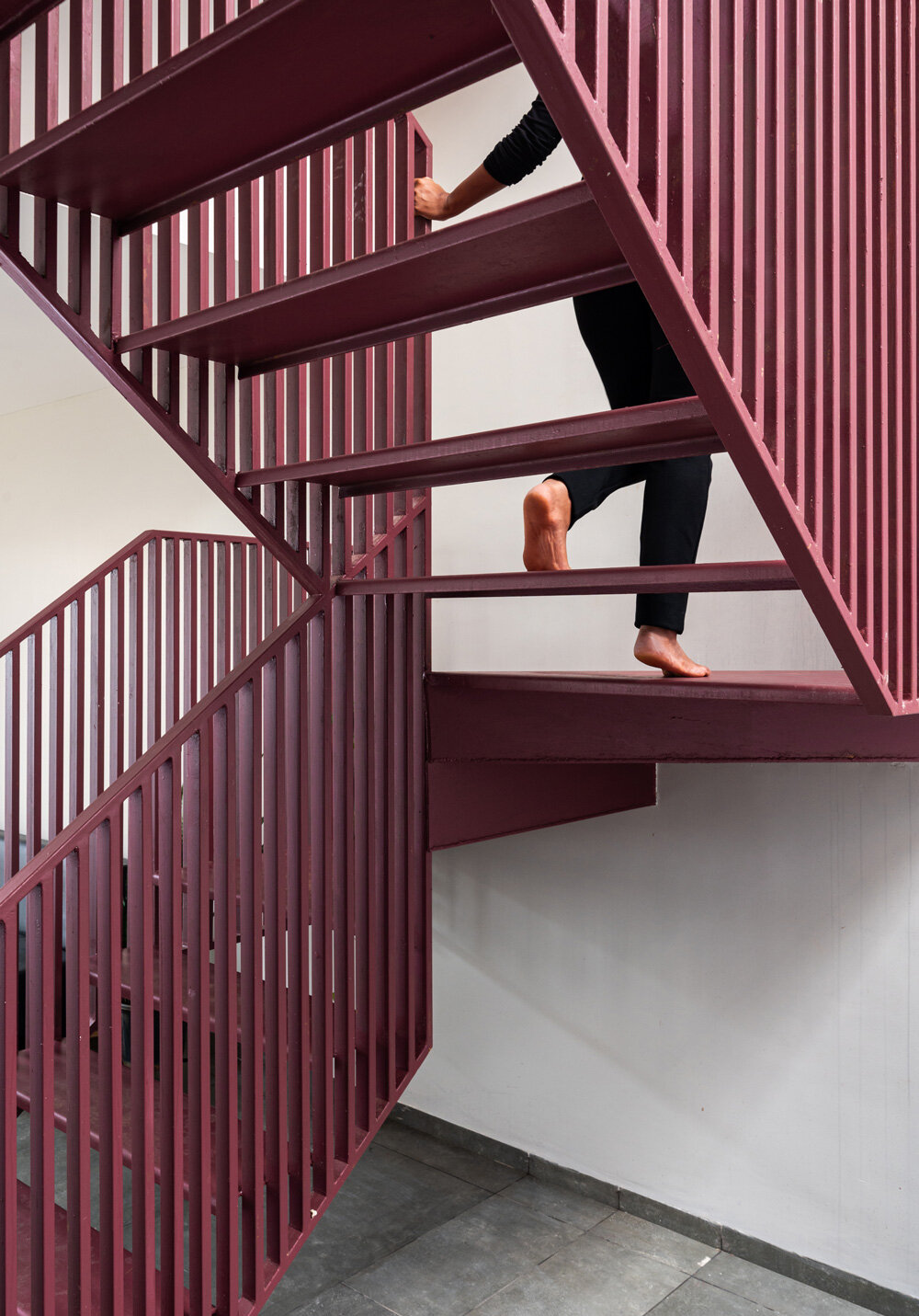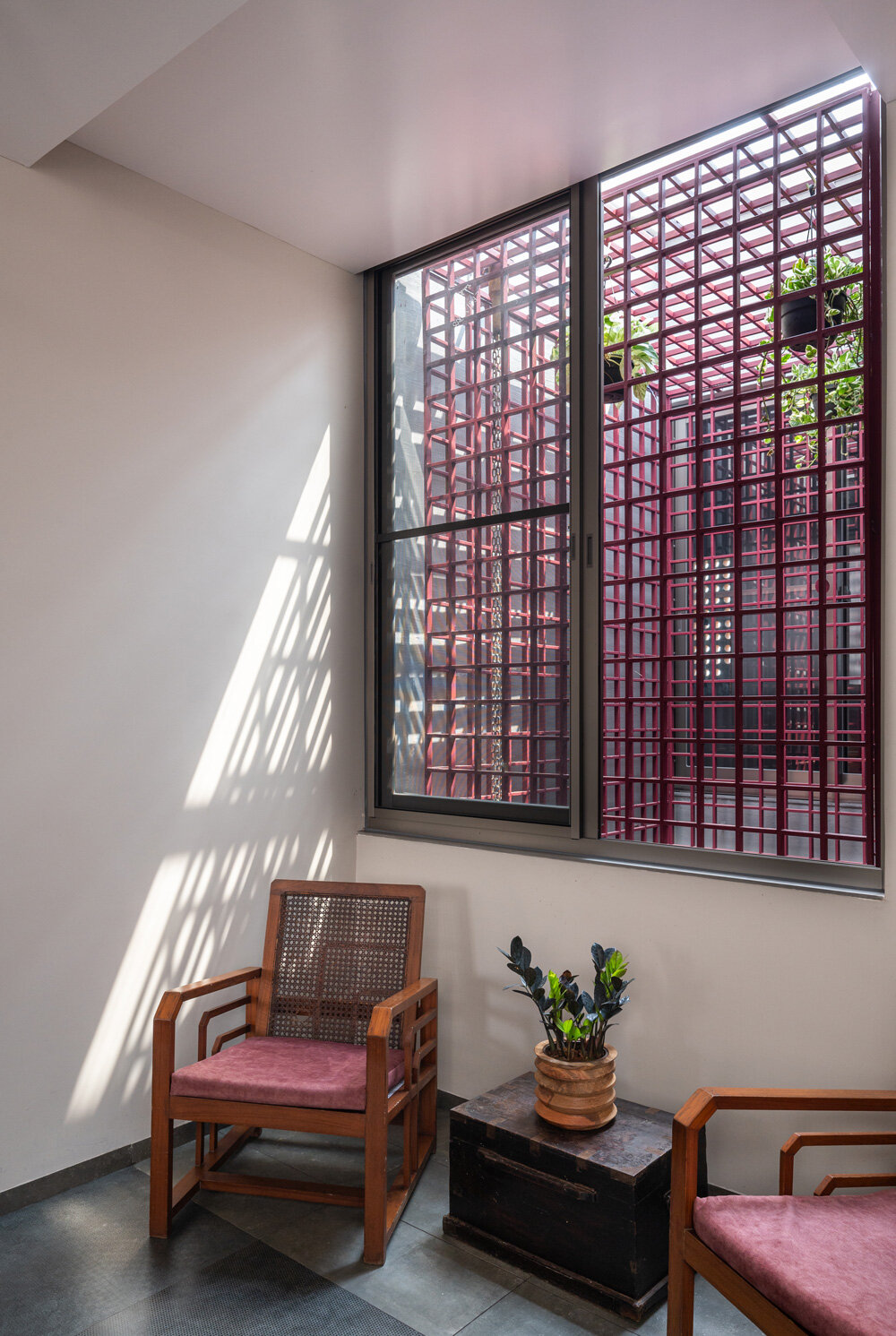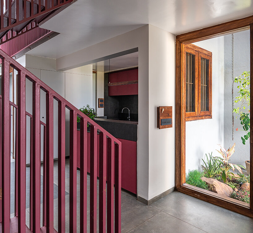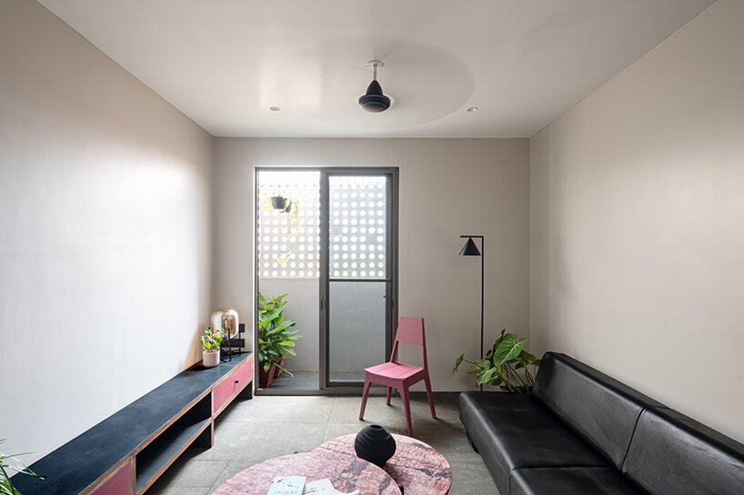 despite the narrow plot, the residence efficiently accommodates all functional needs