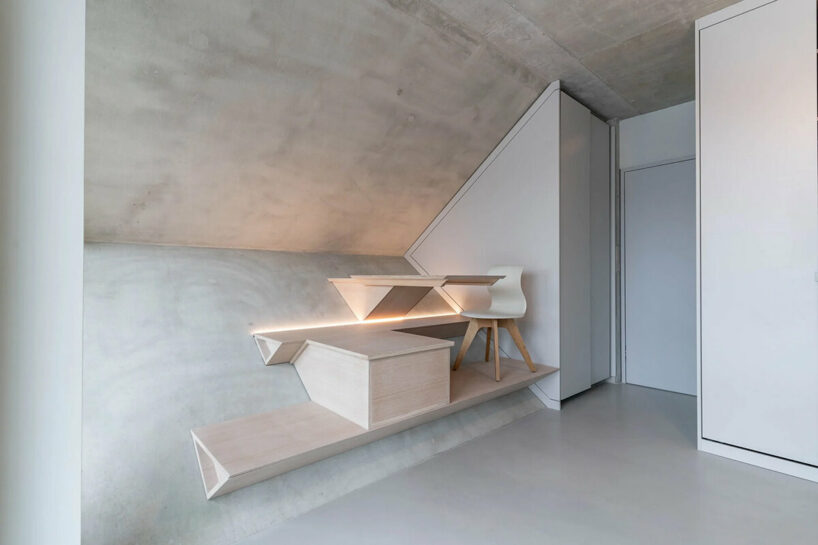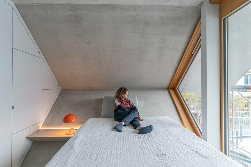 sloping ceilings and efficient use of walls maximize the structure’s functionality