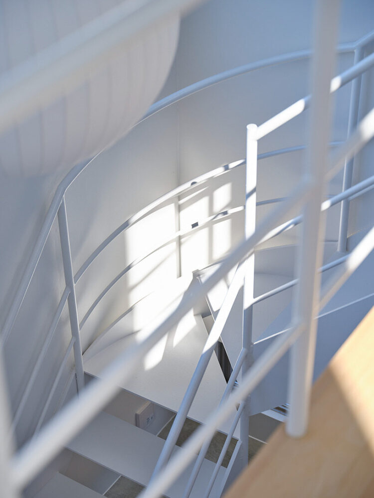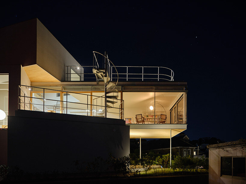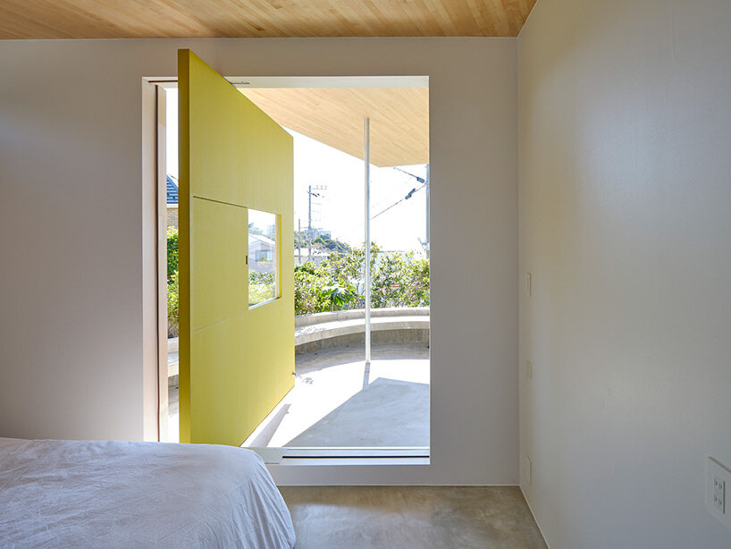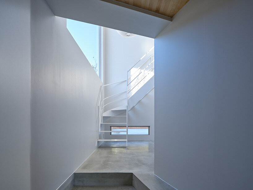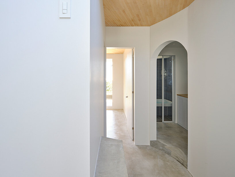the project sits like a ring placed over the terrain, with its funnel-like roof forming a shaded perimeter walkway and an introverted core.