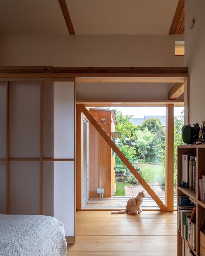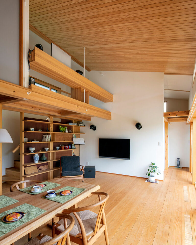 cypress lumber is used for the home’s pillars, beams, and exterior cladding