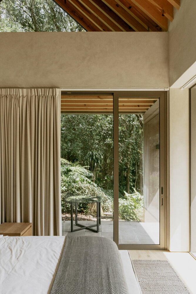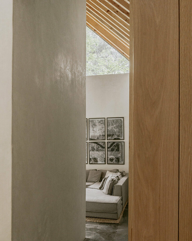 the project sits like a ring placed over the terrain, with its funnel-like roof forming a shaded perimeter walkway and an introverted core.