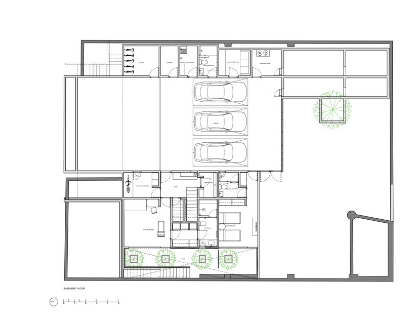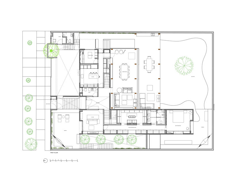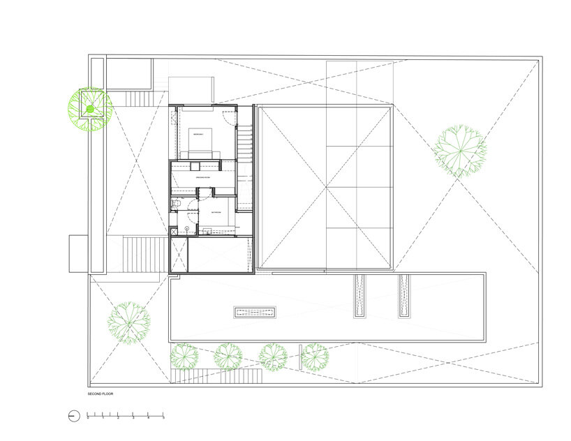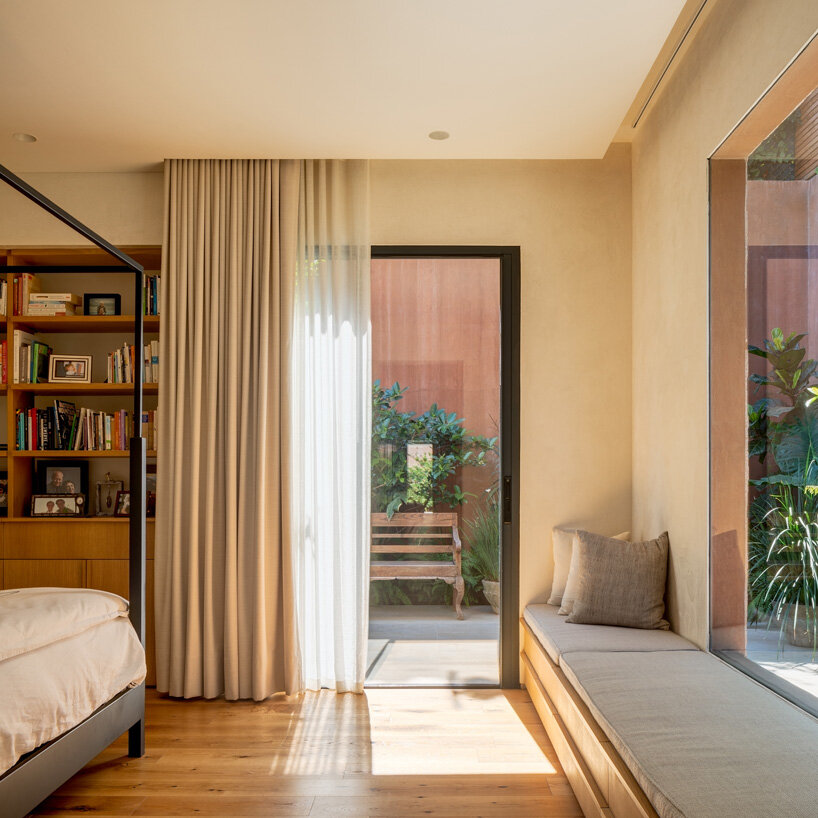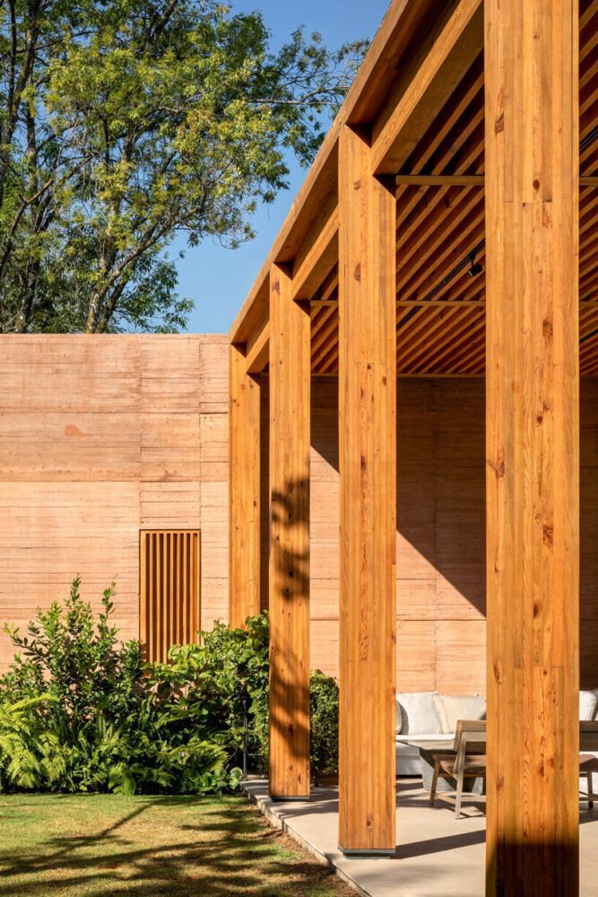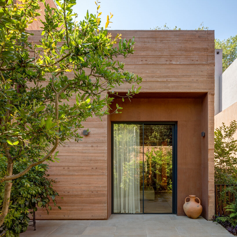 the project sits like a ring placed over the terrain, with its funnel-like roof forming a shaded perimeter walkway and an introverted core.