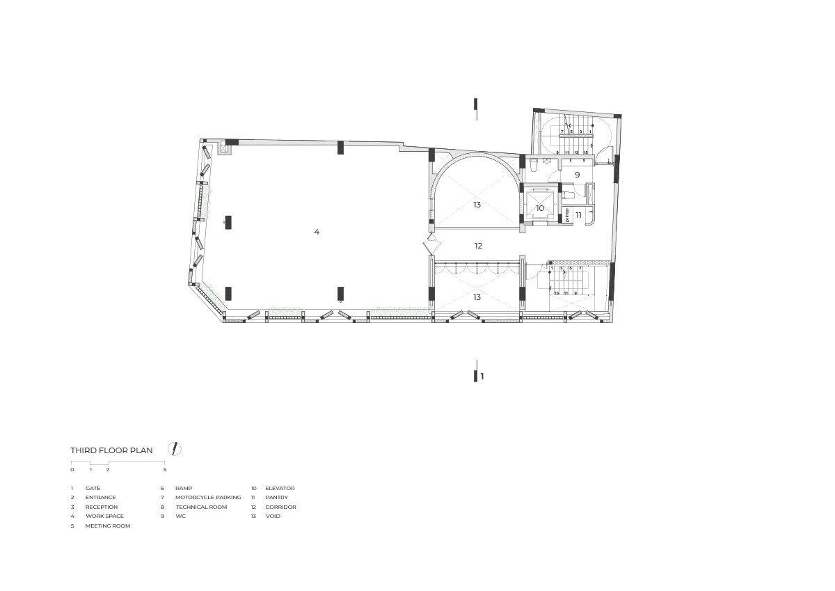 occupants experience the lofty spaces from an interior bridge, mezzanines, and balconies
