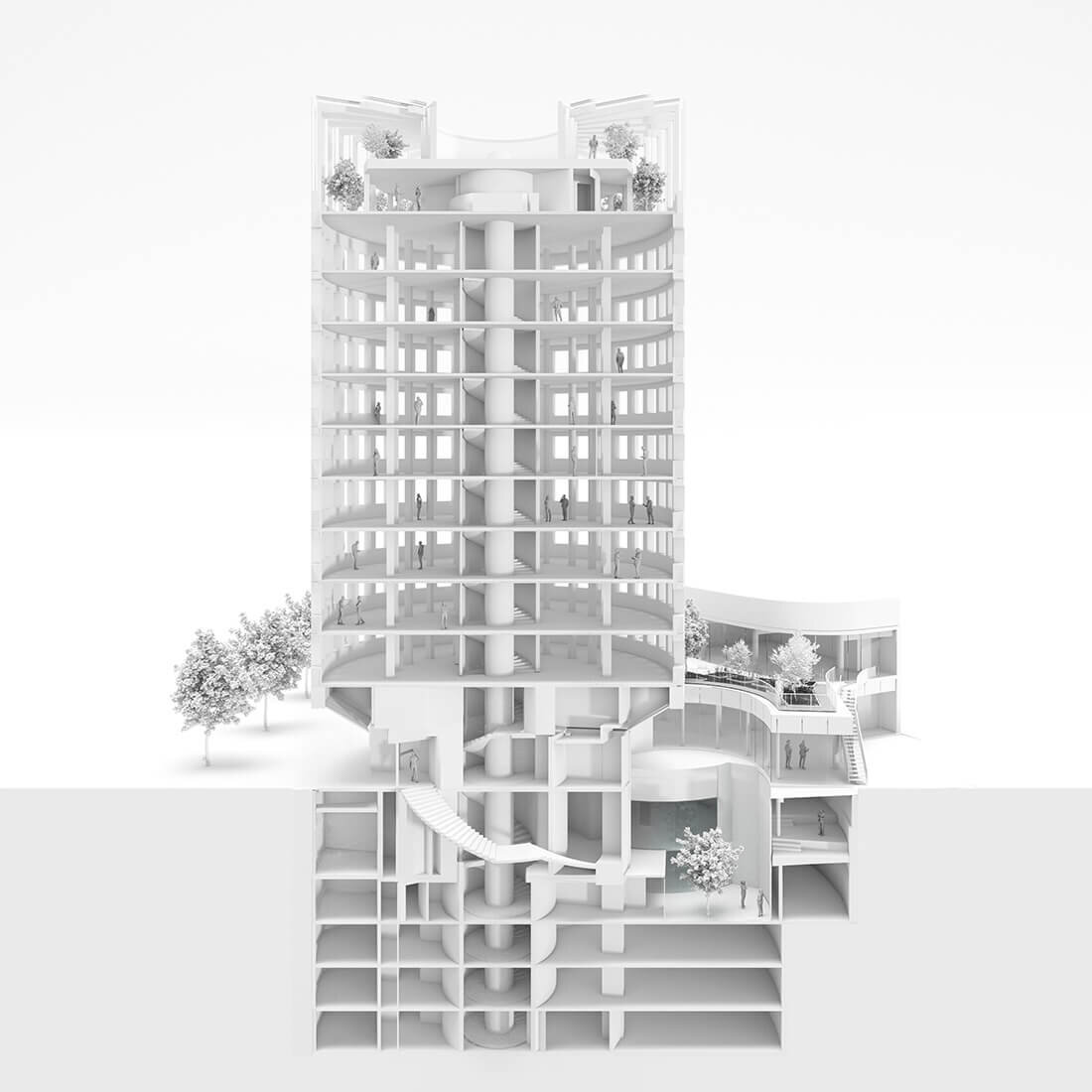 future adaptability is ensured with a slab-post grid and strategically placed circulation elements