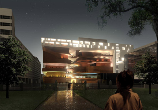 a continuation of the existing rock formations, the hotel is articulated as a series of stepped horizontal planes, courtyards, and gardens.