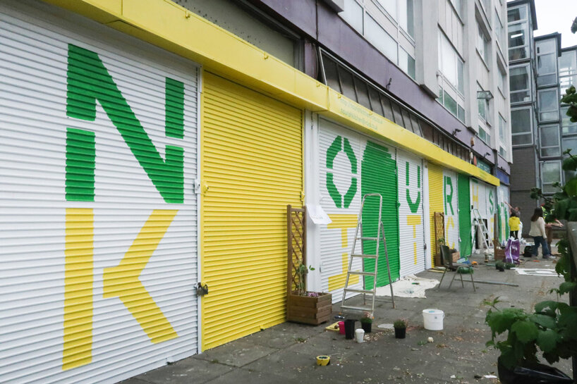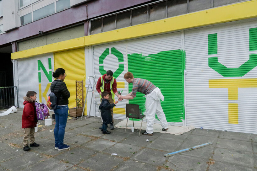 from inception to completion, RCKa focused on getting the local community involved in the project and engendering a sense of long-term ownership. the first step was to raise awareness of the hub, which the team did by hosting a community ‘paint & planting’ day. residents helped paint the old shopfront shutters with a yellow and green mural designed by graphic designer bandiera.