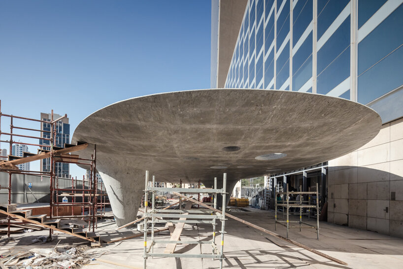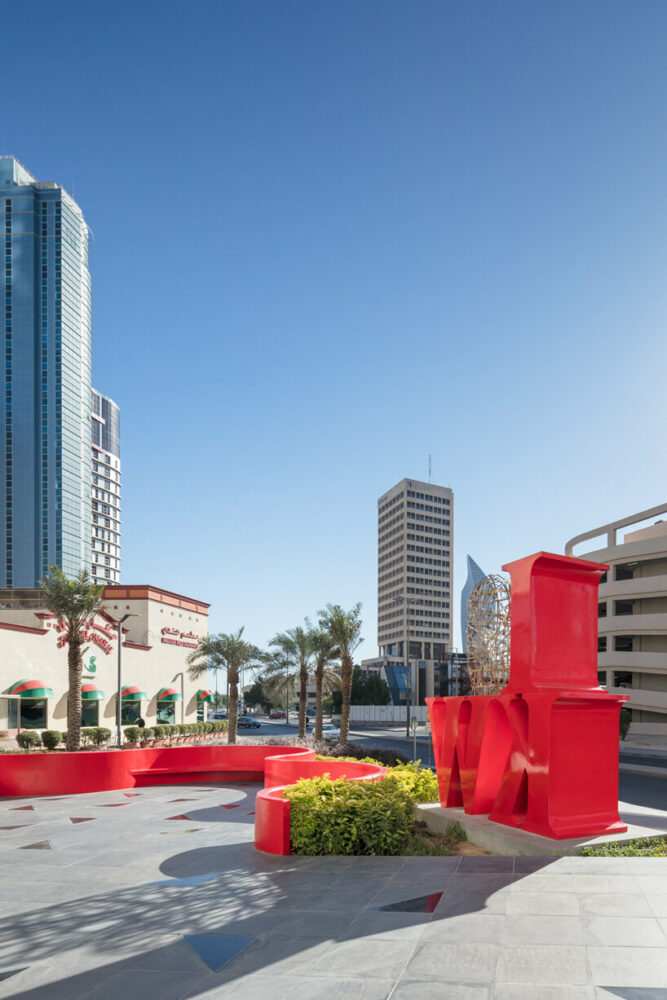 the canopy, finished with multiple coats of Hamra Red, establishes itself as a monolithic landmark in Kuwait City
