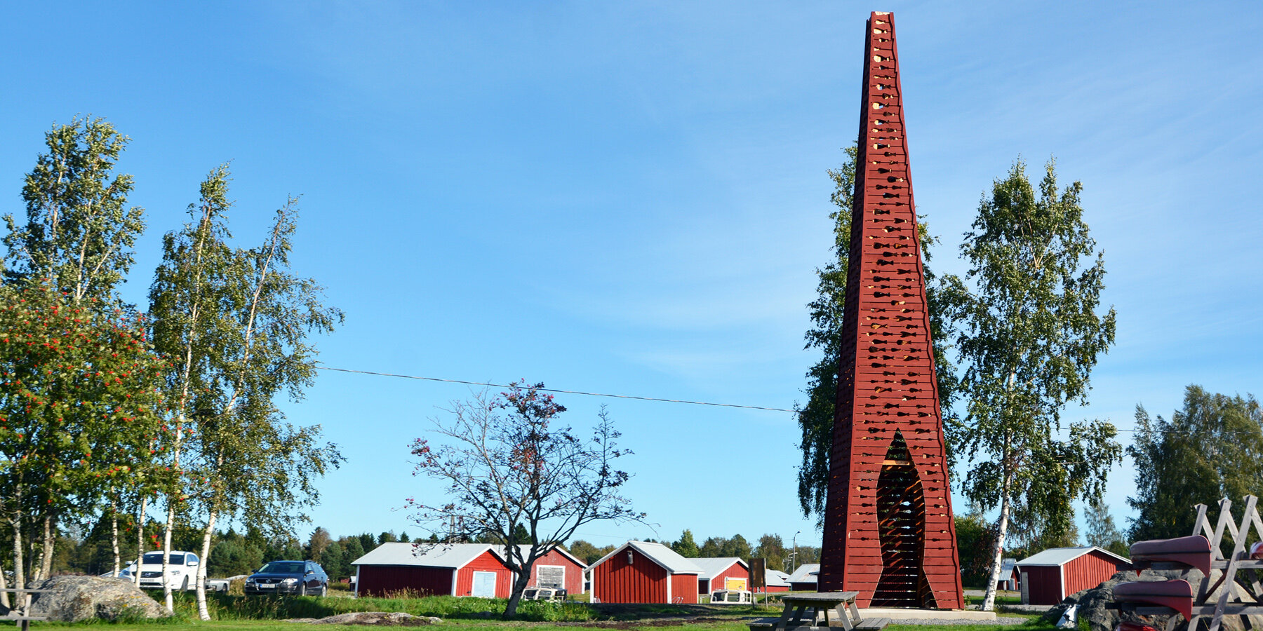Creative studio Ulf Mejergren Architects (UMA) designs a landmark for the small island of Bergö, located off the coast of Vaasa in Finland’s northern Kvarken archipelago. In this region, where most residents speak Swedish as their first language, the islands form a geographical and cultural gradient between Finland and Sweden. The brief called for an artistic structure visible from a distance while also functioning as a local meeting place. The installation stands by a bathing beach adjacent to an old fishing settlement, a summer gathering spot for both residents and visitors. Positioned between land and sea, the site naturally accommodates social interaction and community activity.