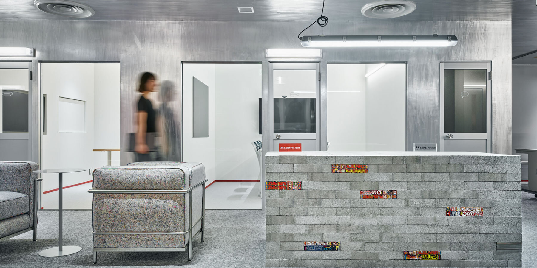 magazine covers wrap the piping, connecting print culture to space design