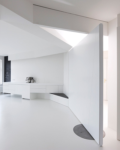 (left) wall panel pivot joint (upper right) open form (lower right) closed form