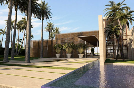 a continuation of the existing rock formations, the hotel is articulated as a series of stepped horizontal planes, courtyards, and gardens.