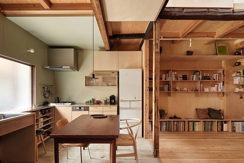 renovation project in tokyo arranges wooden house's interior layout in spiral sequence