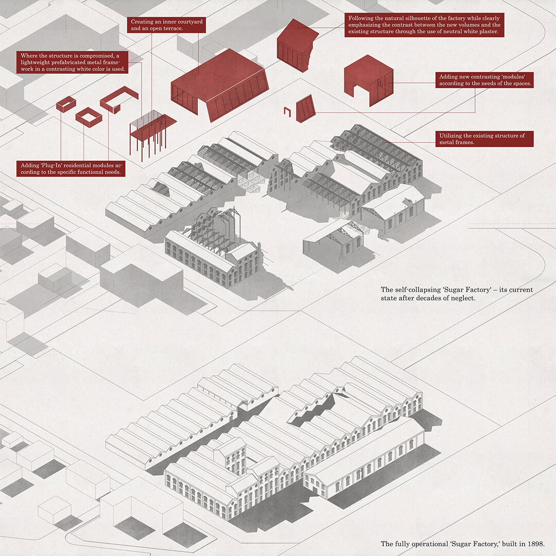 ‘ReFactory’ by Vanya Dimitrova transforms a 19th-century sugar factory in Sofia, Bulgaria, into a STEM hub with labs, housing, and reconfigurable spaces, blending historic preservation with sustainable, modular architecture