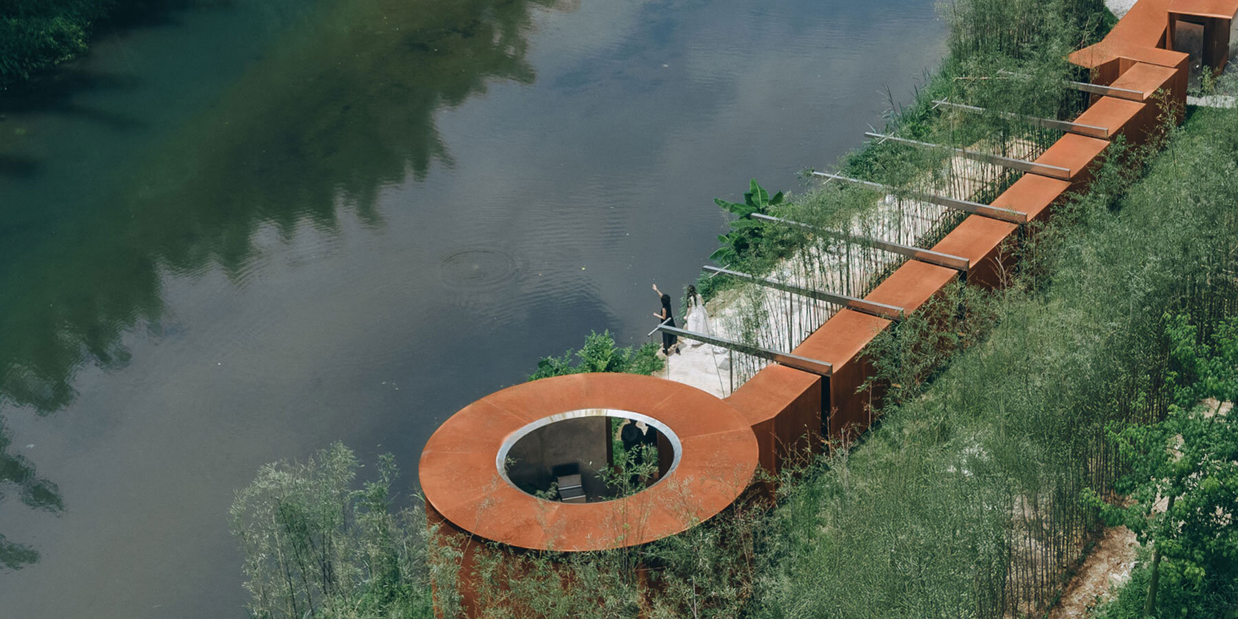 rhythmic steel pavilion by DL atelier weaves through riverfront bamboo grove in china