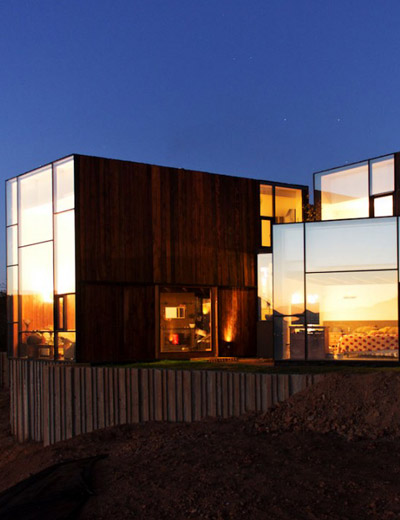 wood and glass volumes site atop a corrugated concrete plinth overlooking the landscape image © ricardo torrejón